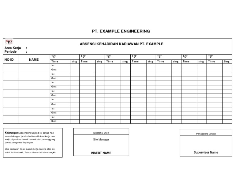 Contoh Format Lembar Absensi Karyawan Harian Manual Tips Kerja
