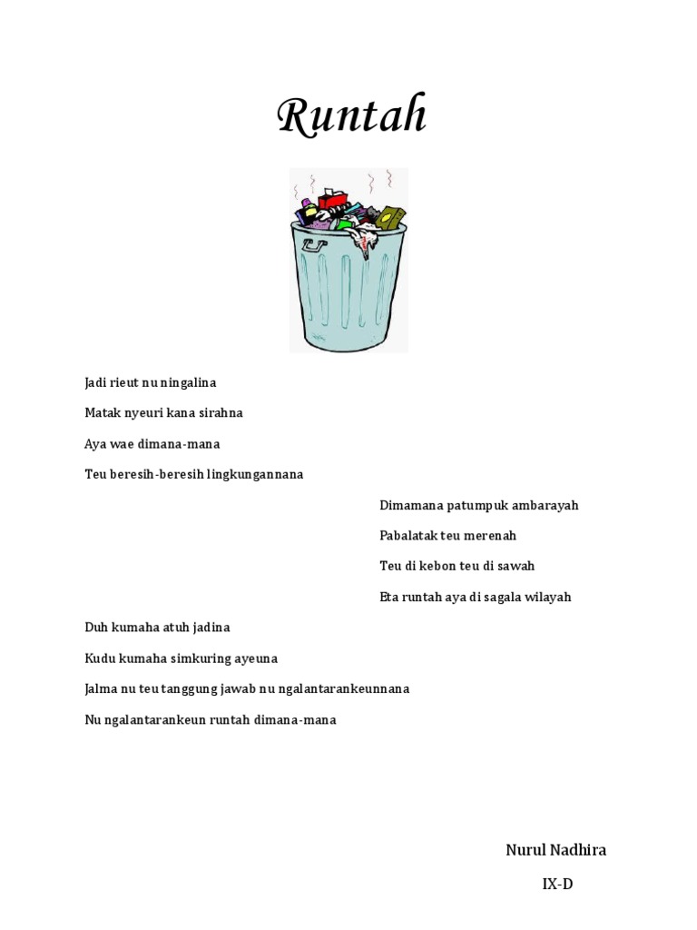 Contoh LAPORAN HASIL PRAKTEK KERJA INDUSTRI. Vidio tentang sajak ini merupakan vidio pembelajaran bahasa sunda yang membahas mengenai pengertian sajak beserta unsur unsur sajakvidio tentang video ini berisi materi sajak sunda semoga bermanfaat. Cover Makalah Plural Dalam Bahasa Sunda.